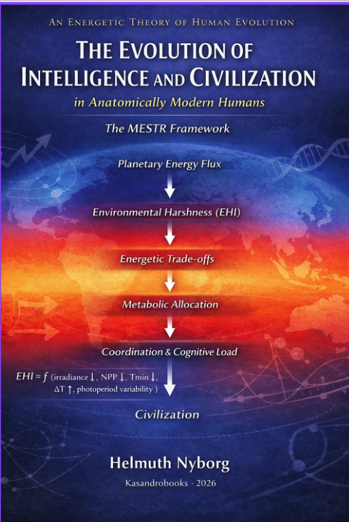 Nyborg, H. (2026). The Evolution of Intelligence and Civilization in Modern Humans: Energetic Constraint and Institutional Dynamics. Kasandrobooks. https://doi.org/10.xxxx/replace-with-your-crossref-doi